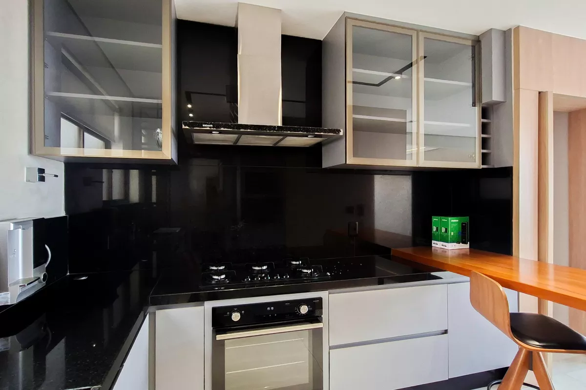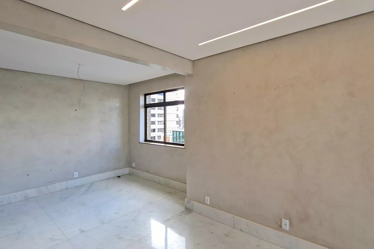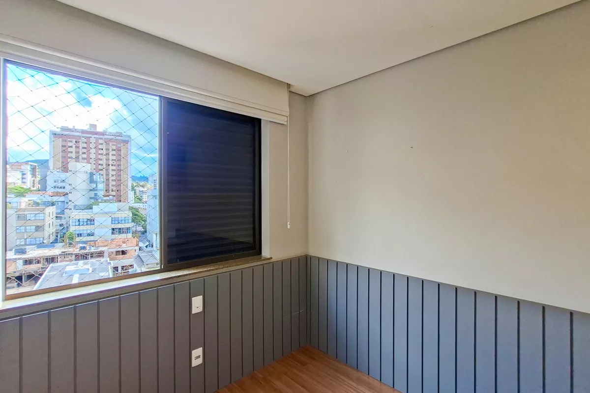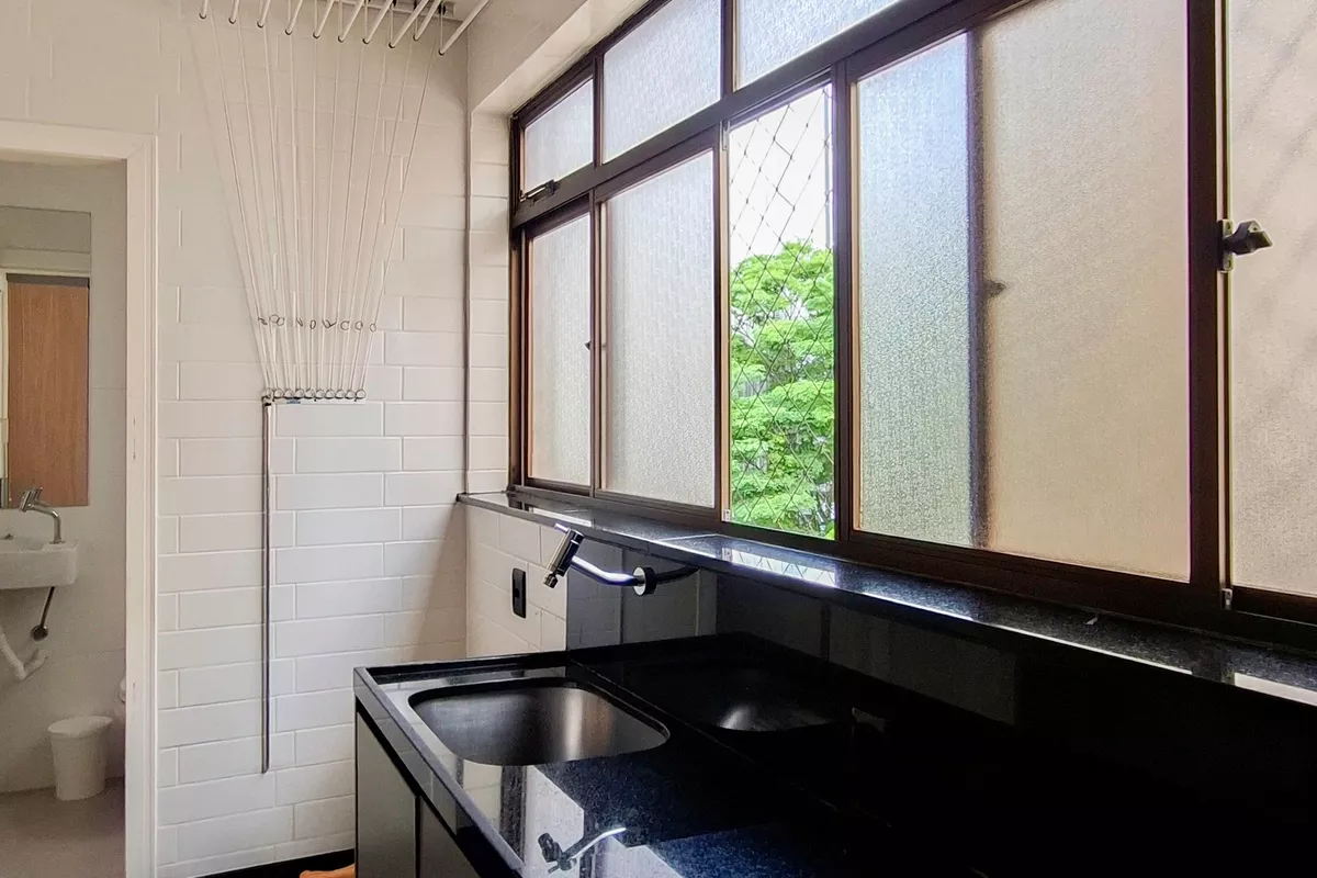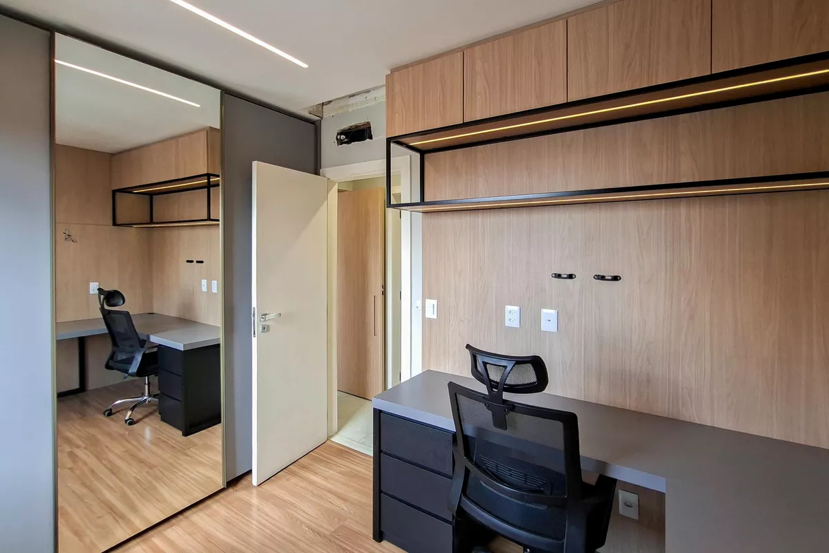Sala para 2 ambientes com piso em mármore, teto em gesso com projeto de iluminação, painéis em madeira; lavabo; varanda integrada com cortina de vidro; 3 quartos, sendo 1 suíte com armários espelhados, com piso vinílico, armários e ar-condicionado; rouparia; banhos com piso em porcelanato, bancadas em granito com armários, box e espelhos; cozinha com piso em porcelanato, bancadas em granito com armários, bancada em madeira para lanche; área de serviço; 2 vagas de garagem livres, cobertas e demarcadas + box de despejo.